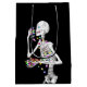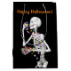 Halloween-presentsäck med min 3d-skelett-karaktär som bingar på Halloween-godis. Anpassadets text säger "Happy halloween!"