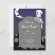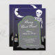 Scary Bra Time Halloween fest-inbjudan med en begravningsplats med skelett och fladdermus. Anpassa texten för att skapa din egen roligt inbjudan att sprida ord om din spooky halloween-bas! Bläddra i Halloween-inbjudningssamlingen om du vill ha mer design.