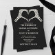 Fira din gothic eller Halloween bröllop med vår Skeleton Händer Heart-inbjudan, med hemligt vackert skelett händer som bildar ett hjärta överst. Den här inbjudan är uppgjord med elegant, modern sans-serif typsnitt, och ger en snyggt och en god ton och bjuder in dina gäster till i din speciella dag med lite pooky elegans.