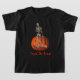 Lustigt skelett sitta på ett elak tittar Jack o lantern pumpungar Halloween T-skjorta. Du kan ändra eller ta bort texten. Besök mitt galleri för att se fler Halloween-kort och presenter. Tack för att du stannade av Smilin Ögon Treasures!