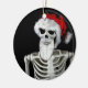 Unik julprydnad med ett skelett tomten mot en svart bakgrund. Mörk och humör för en alternativ Helgdag!