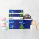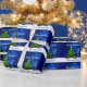 Ett trendig grönt Julgran med en gult stjärna och gult och svarta strålsymboler är ett ögonlockande sätt att önska alla God jul.