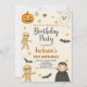 Ta roligten till liv med den här skeletttemade Halloween-födelsedagsinbjudan! Med söta skelett, pumpor och coola är det perfekt för en födelsedagsfest eller ett kostrumbash för barn från oktober. Anpassa enkelt ditt barns namn, ålder, datum och party direkt till Zazzle. En lekfull och festlig design som garanterar ett minnesvärt Halloween-födelsedagsfirande!