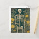 Ett skelett med gula blommor AI genererade konstgjord perfekt för Halloween eller Day of the dead gammaldags snigel-post till en vän med ett fint handskrivet meddelande på baksidan.