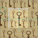 Färgad av kopparskelett nycklar på en bakgrund av sandig vintage.