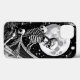 {{ AI ART }} Skeleton spelar upp sin harp på en moonlit-scen. {{{ B & W }}}