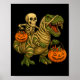 Skeleton Riding Mummy Dinosaur T Rex Halloween Fun Poster