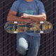Skeleton Skateboard denna konstruktion är en vintage anatomi skelettbeläggning av Jacques Fabian Gautier. Det visar ett anatomiskt skelett upprätt med en del av blodkärlen/ cirkulationssystemet på ena sidan och en del av hjärnan/ skallen och ryggmärgen är avskurna från den andra sidan. Lärandet har en ålder som lämpar sig för den allmänt ohyggliga medicinska historien att använda riktiga kadaver/skelett inom vetenskapen som denna styrelse representerar.