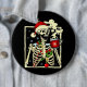 Skeleton som dricker kaffe dog insida men jul knapp