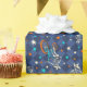 This fun wrapping paper features my hand-drawn comic book style illustrations with werewolf skeletons riding BMX bikes. The bike-riding skeletons are accompanied by coordinating star graphics in orange, ivory and aqua blue and set against a navy blue checkered background.