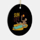 Skeleton njuter av att lägga i Sol med Sol Life på en julprydnad.