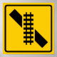 Vägskylt och vägskylt i internationell stil som ger råd om en järnväg som korsar vägen diagonalt!