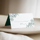 Elegant blommigt bröllop-platskort med skisserade blommor och löv i grönten med vit bakgrund. Anpassa de botaniska bröllop-platskorten med namn och bröllop-datum på baksidan i klassisk grönt. Designad att samordna med vår Sketched Blommigt bröllop samling.