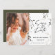 Sketchad löv botaniskt blad modernt fotokort för bröllop spara datum. Klassens moderna hand plockade-design i abstrakt. En del av en samling.