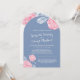 Vackra sketchade ro-färgade konst i grått-blått, vitt och rosa ros-blommigt konstbröllopsinbjudan. Redigera den här inbjudan med ditt eget ord. En unik design från en originalskiss av bläck-pennan från Sarah Trett för www.mylittleedenweddings.com