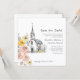 Announce your upcoming wedding with this charming hand-drawn 'Save the Date' card. Featuring a beautiful watercolor illustration of a quaint church surrounded by delicate floral blooms in soft peach, coral, and yellow hues, this design evokes a sense of timeless romance and rustic elegance. The gentle sketch-like quality and artistic watercolor splashes create a truly unique and memorable piece. It's the perfect way to share your special date with loved ones, setting the tone for a beautiful wedding celebration. Let this artistic design be the first glimpse into your magical day.