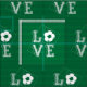 En coola fotbollsformgivning med ett typografiskt brev från stil kärlek med fotboll i vitt på en grönt fotbollsfotbollsbakgrund i fält. Perfekt för alla fotbollsspelare eller fläkt. Vi kan skapa den här designen i vilken kombination som helst färg till kostym i din egen stil och smak, bara använda kontakten med oss via vår GiftsBonanza-affär med din begäran.