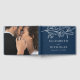 Elegant blommigt bröllop gäst bok med skisserade vita blommor och löv nära överkanten av konstruktionen med en marin bakgrund. Anpassa den botaniska gästen bröllop bok med uppgifter om namn och bröllop nedan. Lägg till anpassningsbar i ryggraden, t.ex. namn, bröllop-datum osv. Baksidan av blommigtens gäst bok har förlovningen vågrät. Designad att samordna med vår Sketched Blommigt bröllop samling.