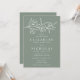 Elegantens bröllopsinbjudningar i blommigten som innehåller vita skisserade blommor och löv nära överkanten av inbjudan med en grönt i sätet. Anpassa den botaniska bröllopsinbjudan med dina uppgifter om namn och bröllop nedan i klassiska vita bokstäver. Designad att samordna med vår Sketched Blommigt bröllop samling.