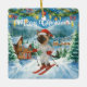 Ski jul för Santa Siamese Cat Lovers Snowy Ceramic Ornament