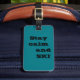 För skidåkaren i din familj eller dig. Gå ut ur folkmassan med den här blå bagaget med läderband och söta skidcitat.