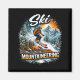A daring ski mountaineer carves down a snowy alpine slope at sunrise, surrounded by rugged peaks and essential backcountry gear.