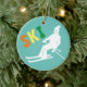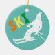 Ski Retro Skier Winter Teal White Julgransprydnad Keramik