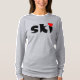 Ski-text med ett hjärta som prickar i skidan i ord är en roligt presentdesign för skidåkare, skidinstruktörer och älskare för vintersporter vid födelsedagar och helgdagar.