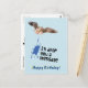 Roligt Grattis kort med en flygande mås, mås spillning och rolig textrad "Jag skickar dig ett meddelande" och helt anpassningsbar text "Grattis på födelsedagen!", lägg till din text. Roligt mås djur pun kort att skicka till fågelälskare och mås fans!