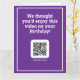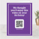 Skicka en video till vem som helst med ett "videolänkskort". Skapa en födelsedagsvideo för din vän att njuta av! Skicka en video med QR-kod på ett födelsedagskort. Låt andra skanna din QR-kod med sitt mobila telefoner! Ersätt bilden med din egen uppladdade QR-kod. Välj din video på appar som YouTube, kopiera den länken och klistra in länken i en QR-kodgenerator som https://www.qr-code-generator.com - hämta sedan bara koden och ersätt den här koden med den nyligen skapat koden. Det är så enkelt. Kom ihåg att testa den QR-kod du har skapat med din egen smarta mobil!