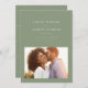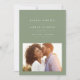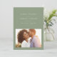 Med en modernt men enkel typografi är det här enfotot som sparar datumet perfekten för att tillkännage din förlovning och det kommande bröllop. Den folkliga sidans grönt färg fungerar med varje stil i bröllop från formell till avslappnad. Baksidan har en enkel rand. Du kan ändra färg genom att klicka på "anpassa ytterligare".