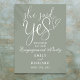 Den här sage grönt elegant-skriptet "Hon sa ja" välkomstskylten i förlovningen kan vara personlig med hela ditt namn och speciella datum. Designad av Thisisnotme©