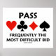 Få andra att göra en dubbla av vad som ofta är det svåraste anbudet i bryggspelet, med denna poster som innehåller de fyra korten kostym, tillsammans med talesättet "Pass Frequly the Margult Bid". Underbar poster en gåva till vilken bryggspelare eller bryggelärare som helst!