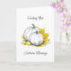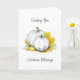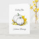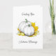 Svart kort med Hösthälsningar. Snygga vita pumpor och höstfollier.