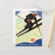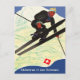 Schweiz skidkort. Man på ett skidhopp, med berg bakom sig. Vykort med en text som du kan anpassa.