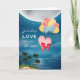 Perfekten för att skicka kärlek på Alla hjärtans dag eller någon annan dag på året! Skiljer ett hjärta med stor röd båge, som bärs på färgstarka ballonger över ett stillastående hav under en ljus måne och handflatan träd nedanför. Tom inuti. Underbar för att skicka ett digitalt meddelande till familj och vänner också!