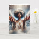 Har du en vän eller familjemedlem som mår dåligt eller går igenom någon form av sjukdom? Här är ett kort med välgångsönskningar till någon. Skickar läkande vibrationer med en AI-illustration av en färgad ängel som håller upp händerna i bön.
