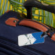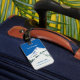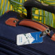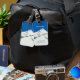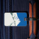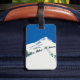 Denna moderna bagagemärkre presenterar vintern landskap av en skidasemesterort. Denna härliga plats visar snöig berg och en skidlift på en intensiv blå himmel. Gräset som träd kan ses, spridde omkring. Denna slå yet eleganta design är underbar för en skidaälskare eller en skidaentusiast.