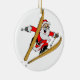 Gulliga julgranprydnadar som presenterar en tecknadteckning av att skida för jultomten. Dessa skulle skräddarsy prydnadar gör underbara gåvor för vänner och familjen som älskar för att skida. Sälj dessa som skidar Santa prydnadar i ditt lager som sells skidar utrustning.