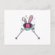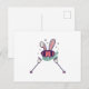 Skidande kanin med skidpinnar och skidglasögon vykort