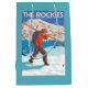Skidar bärande snö för skieren - Rockiesna - vintage resoraffischen skapades i 2007. Detta avbildar visar platser från den steniga bergnationalparken, CO.