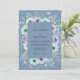 Denna design har en lugn skifferblå bakgrund prydd med frodiga akvarellblommor. Mjuka lavendelfärgade rosor och mintgröna anemoneblommor smälter samman med ömtåliga ormbunkar och silverdollareukalyptusgrönska. Stämningen är eterisk och romantisk, perfekt för ett sofistikerat säsongsfirande. Denna konstnärliga palett kombinerar svala toner med mjuka pasteller för en sammanhängande estetik.