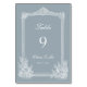 Skifferblå fransk countrybröllop bordsnummer
