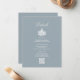 Förenkla kommunikationen med dina bröllopsgäster med detta eleganta dammiga blå vintage-ornamenterade bröllopsdetaljkort i ram – skapat för att perfekt komplettera din bröllopsinbjudan. Med en delikat anpassad byggnadsillustration (idealiskt för att visa din bröllopsplats som Le Pavillon Hotel), en funktionell QR-kod och klassisk indelning för mottagning, boende och ytterligare information, håller detta kort alla viktiga detaljer organiserade och tillgängliga.