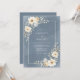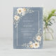 Denna design har en delikat arrangemang av mjuka, måleriska blommor i krämiga vita och persikofärgade gula nyanser som kaskaderar över en dunkel skifferblå bakgrund. Den eteriska konstnärligheten frammanar en romantisk och fantasifull stämning för en särskild tillställning. En touch av grönska tillför ett naturligt element till den förtrollande displayen.
