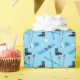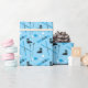 Fabulous blue wrapping paper patterned with skiing equipment including boots, skis, poles and goggles. Perfect for skiers and snow sports fans.