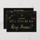 Be din vän, bror eller någon annan speciell person att vara Ring Bearer vid bröllop med dessa "kommer du att bli mitt Ring Bearer"-kort. Designade som en del av vår Shimering Sparkles Bröllop Suite har de en elegant men ändå en vit utformning av rosa & guld-stjärnor med guld-text över en svart bakgrund.