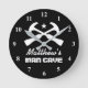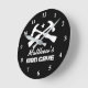 Hämmer logotypens bilverkstad eller mankavallur. Anpassningsbarnas svarta och vita väggklockklapp. Coolan passerade verktyg med personlig namn och färg. Jul- eller födelsedagsgåva till make, pappa, pojkvän, farfar, chef, medarbetare, snickare, entreprenör, pojke, barn osv. Trendigets hemindekortidsklocka för mekaniker, bilverkstäder, verkstad, personalgrotta osv. Ladda upp din egen logotyp eller bild som tillval.