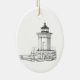 Bug Light i South Portland, Maine fångas i denna känsliga blyertsskiss. Denna minimalistiska teckning fokuserar på den ikoniska Maine-fyren och dess gångvänliga pir som låter dig gå helt fram till den och njuta av att titta på båtarna som seglar och passerar förbi i den hektiska Portland Harbor och Casco Bay.