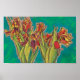 Poster med färgstarka blommigtar, gult-röda tulpaner med grönt löv på turkosblå bakgrund. Mjuka pasteller och bläck-penna på farkoster pappra, livskiss teckning, 2021 © Clipso-Callipso / Julia Khoroshikh www.juliakhoroshikh.art #modern floral #tulips #expressionism #tulipsart #redtulips #tulippainting #dyingblommor #floralsketch #floralart #poster